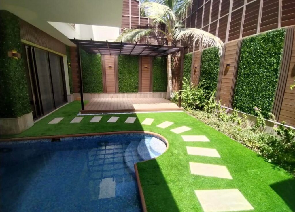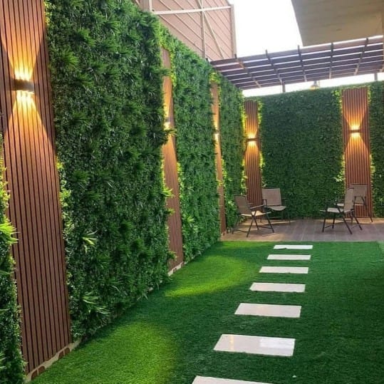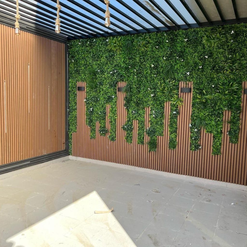 توفر تشكيلة رائعة من العشب الجدارى بجميع الالوان والكثافة بالاضافة الى توفير العشب ثلاثي الابعاد مع تزيين جدار الحوش .